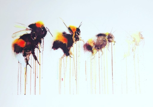 “Dying Out” (which is part of Sophie’s phasing out of painting bees) is a signed and numbered, A2 sized limited edition screen print on medium grain Somerset cartridge.