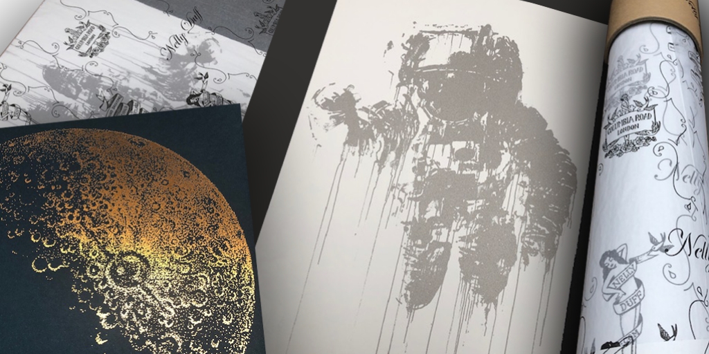 Inspired by our sponsorship of “One Small Step” in this 50th anniversary year of the moon landings, we decided to dedicate part of our office art curation to this theme. The staircase up to our office will be hung with posters from the “One Small Step” campaign as well as prints and original artworks on the same theme. Some pieces have already arrived and gone off to the framers.