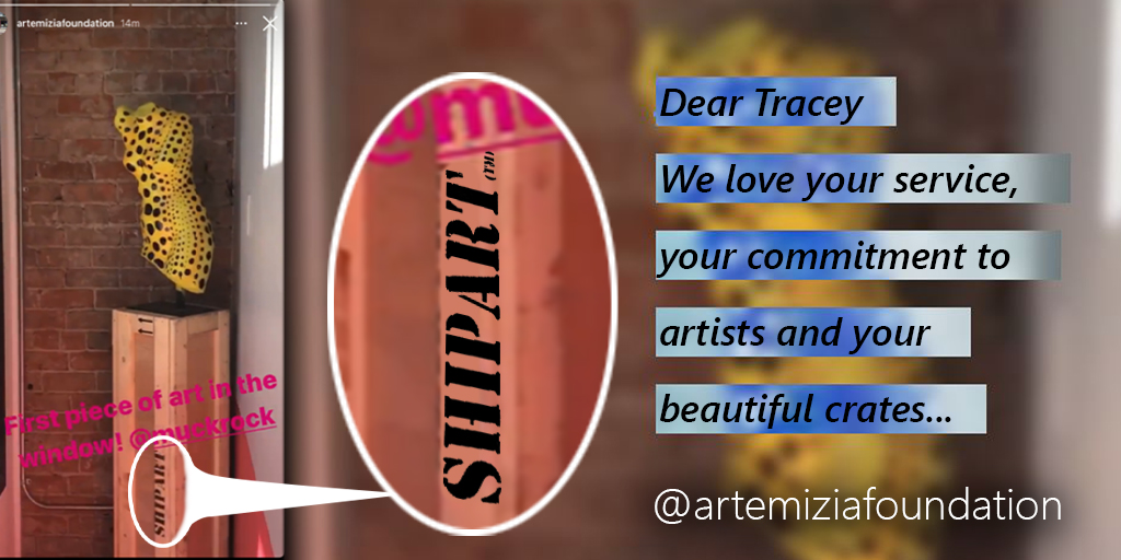 Having packaged and shipped art to the Artemizia Foundation who exhibits work by some of the most important contemporary artists in the world, we received the wonderful message below via Instagram. Artemizia Foundation are also upcycling our crates for some unique props: