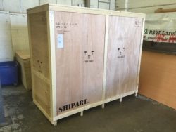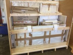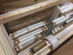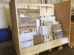 When we are moving multiple pieces of art to the same address it is sometimes more cost effective and less wasteful of resources to pack several items into one crate – provided that the medium is suitable for multi- packing – no neons for example! This makes the both the packing and shipping charges less expensive and more environmentally friendly. Our ShipArt team will always advise if this is an option. It’s particularly good for exhibitions and this series of images shows how it can be done –