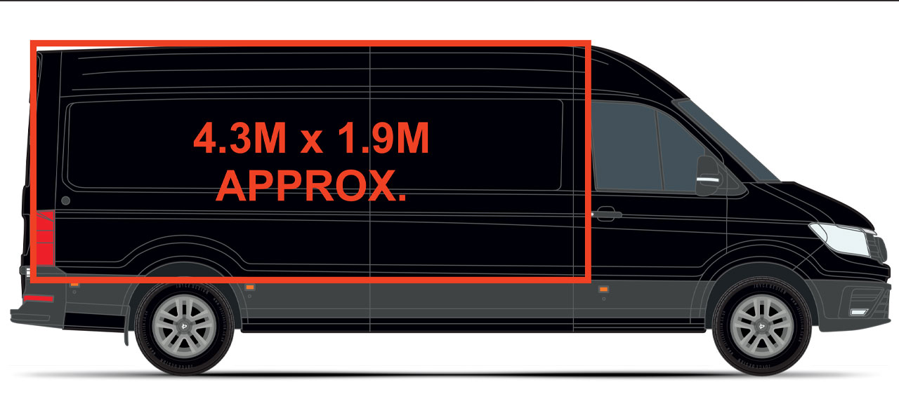 Schematic showing the space where the artwork will sit on vehicle, plus the dimensions