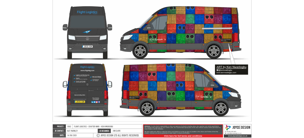 The final work once agreed on, will be passed over to our wrapping partners Joyce Design Ltd, who then produce images of how the artwork will look on a finished vehicle (as below).