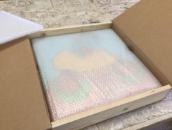 All our art packing is created with sustainability on mind – sustainably sourced wood from managed forests in the UK, recycled and recyclable card, recyclable foam, paper tape etc.